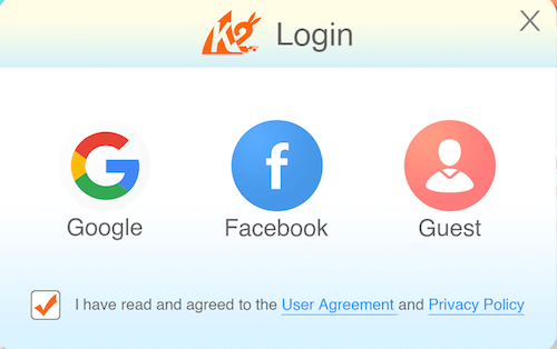您可以在未登录的情况下,进行登录,目前支持谷歌,Facebook,qq,微信和游客登录。以 facebook 为例: