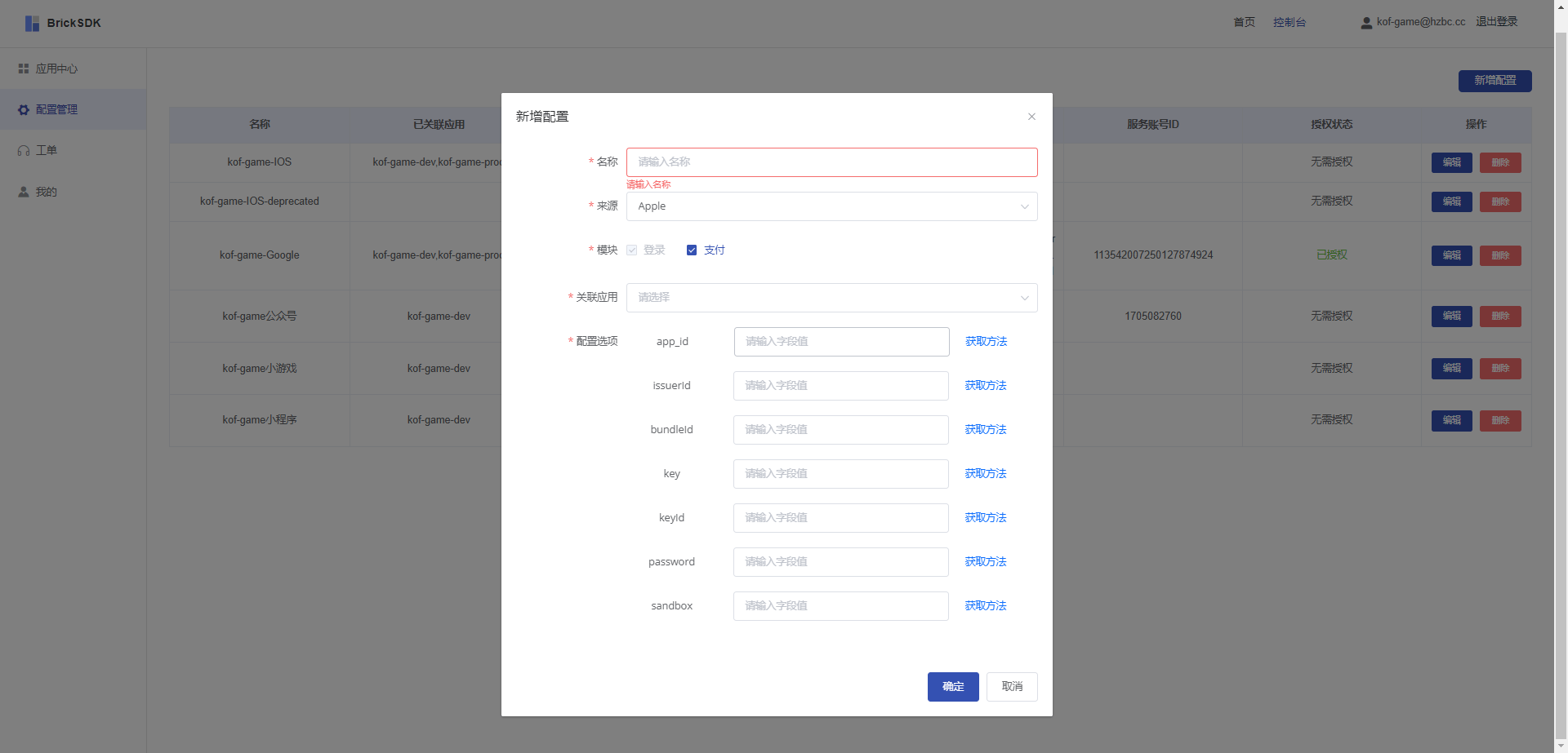 服务帐号配置文件::google cloud创建的服务帐号对应的json文件,接入支付功能时需要