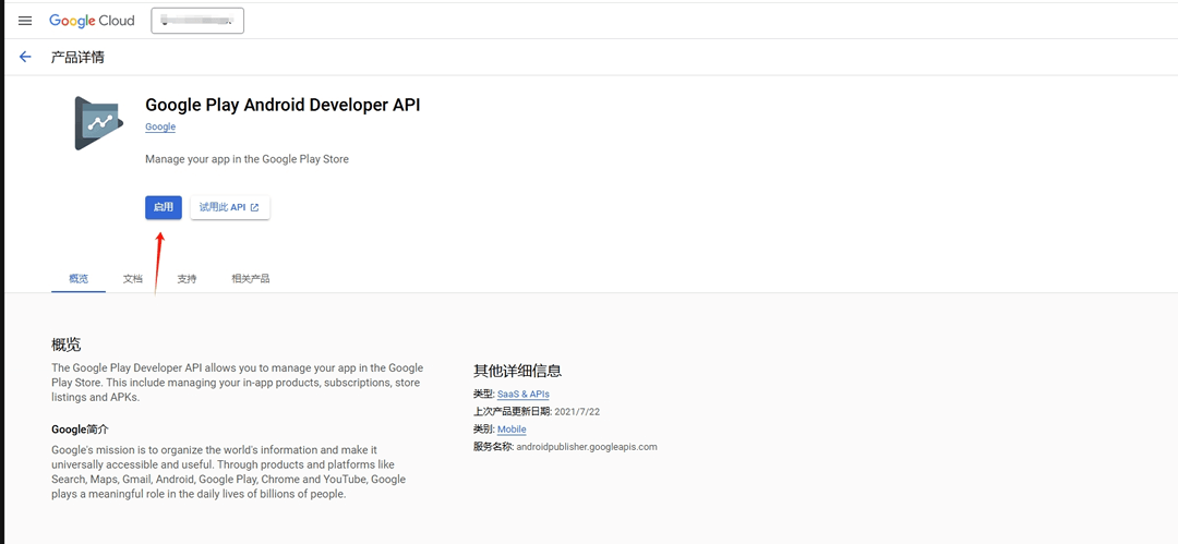 在创建服务账号页面中,确认是和 Google Play 后台关联的项目(这里的 Google Play Android Developer 只是项目名称,没有其他含义)。如下图: